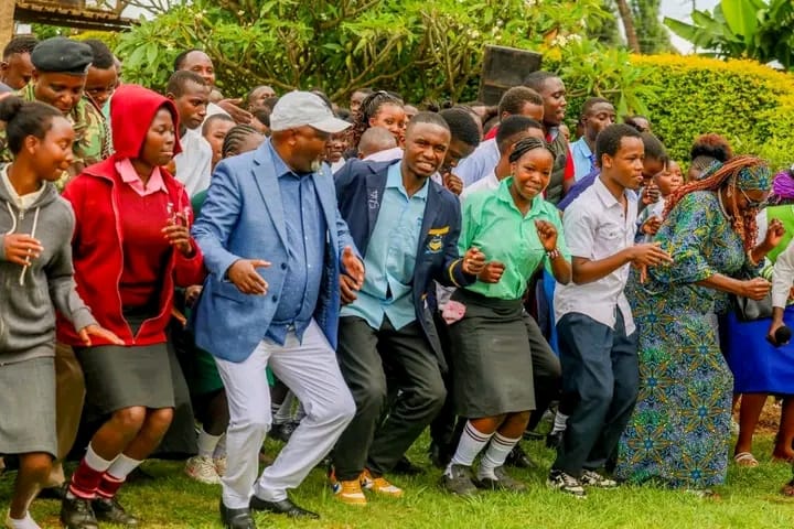 Meru Senator Kathuri Murungi in a jig with the students schooling under his Kamashinani Foundation sponsorship